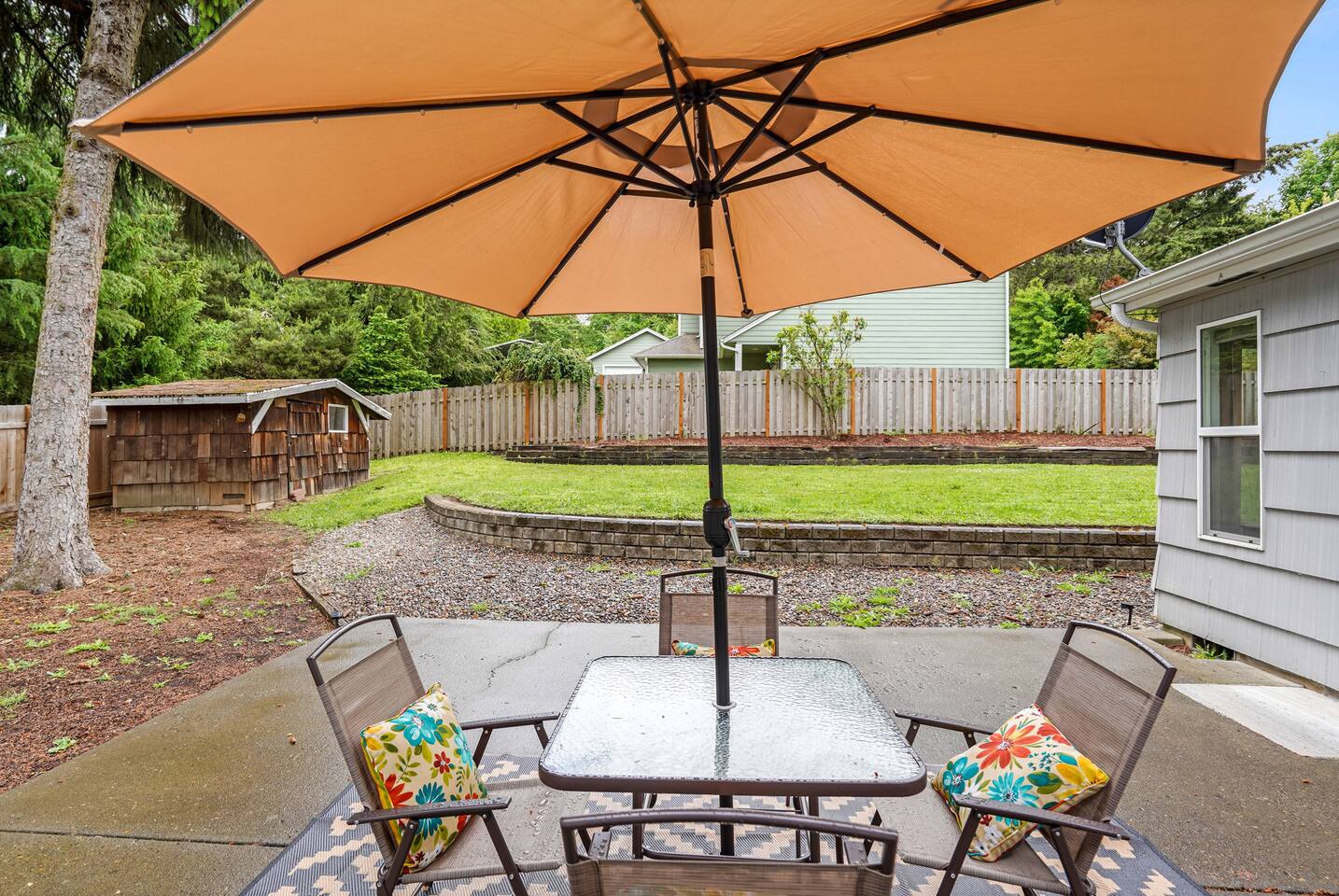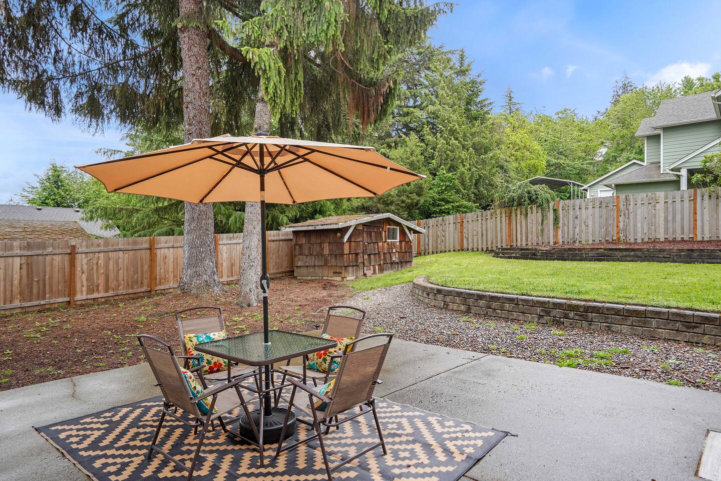 House and yard. Partial driveway. Washer / dryer is all-in-one (high efficiency)